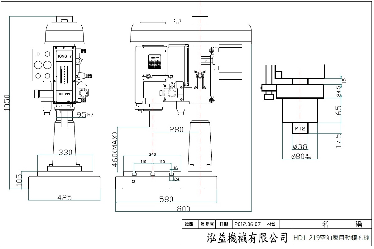 ◎ 空壓推送,油壓控制進刀速度,穩定速度佳,不占空間。